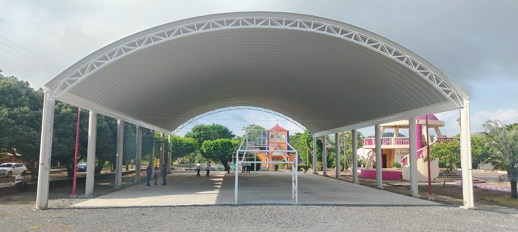 La obra beneficia a niños, jóvenes y adultos, quienes ahora cuentan con un lugar seguro y techado para sus actividades. Además, realizamos la construcción de guarniciones, banquetas y la instalación de iluminación en todo el perímetro del parque y el área recreativa. Con estas acciones, reafirmamos el compromiso de nuestra administración en mejorar la infraestructura pública y en promover el desarrollo integral de las comunidades rurales de nuestro querido municipio.