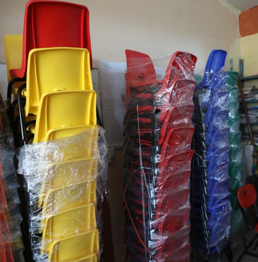 La Secretaría de Educación de Veracruz (SEV), distribuyó más de 2 mil 114 bienes, entre sillas, mesas, pupitres, butacas, escritorios, pantallas de 55 pulgadas, equipo de sonido, proyectores, computadoras e impresoras.