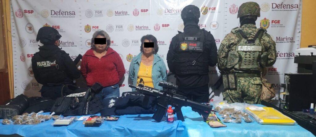 También incautaron una réplica de arma larga, cartuchos útiles, cargadores, armas blancas, un bastón PR-24 y gas lacrimógeno; además de equipo táctico, cámaras de videovigilancia, un radio comunicador, una computadora, una tableta electrónica y un disco duro.